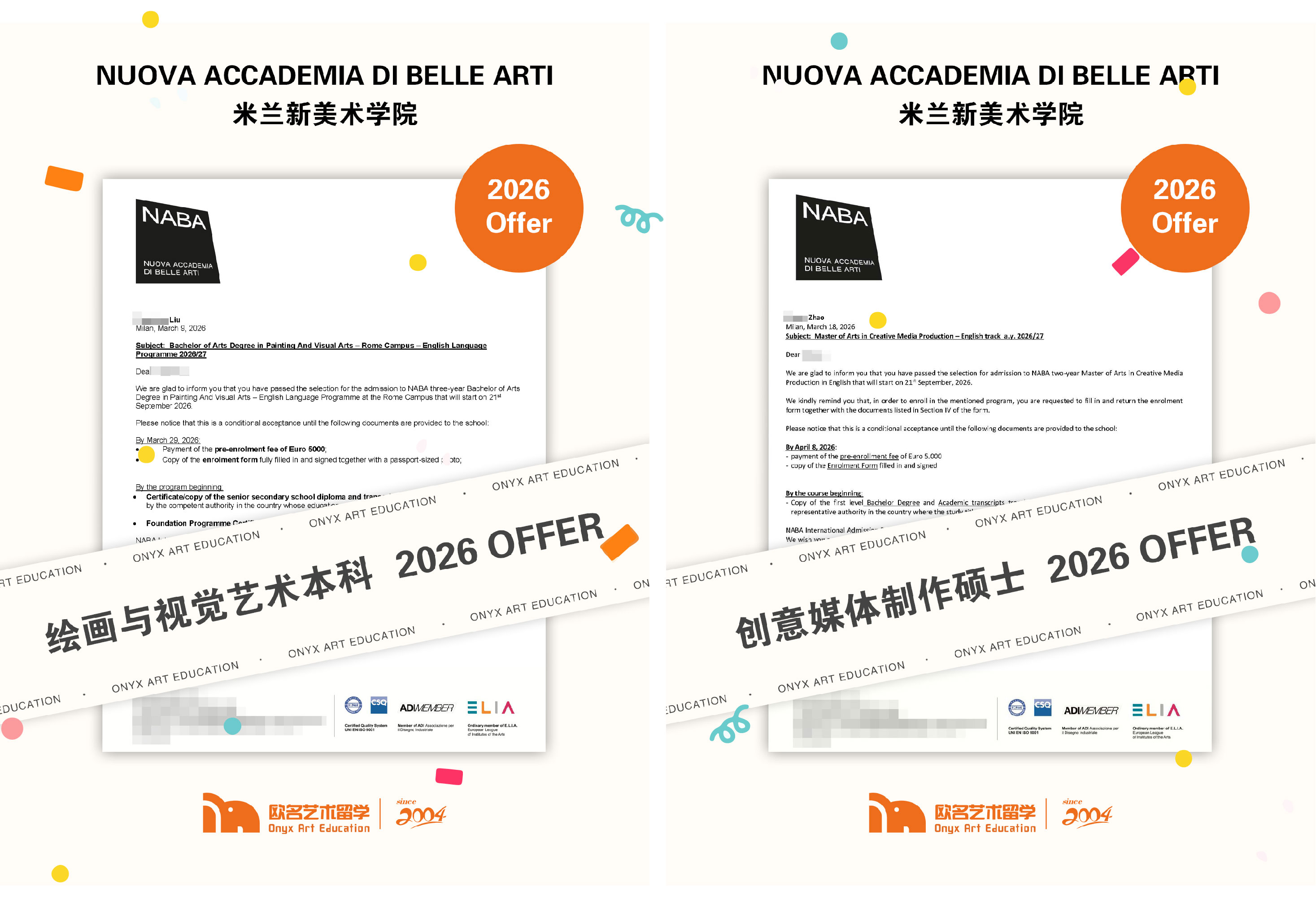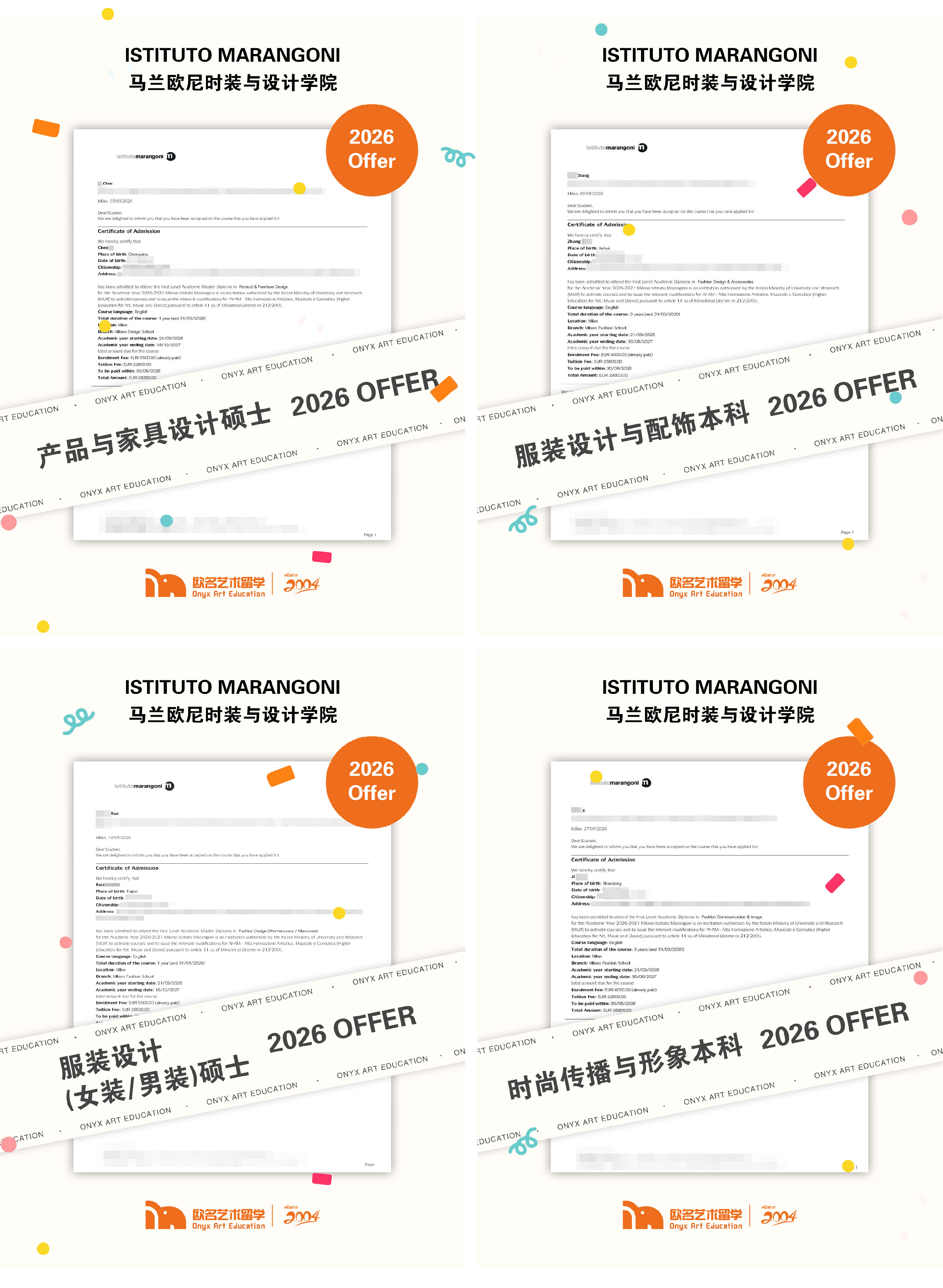 恭喜以下 7 位同学拿到马兰欧尼学院、米兰新美术学院、米兰工业设计学院的录取!